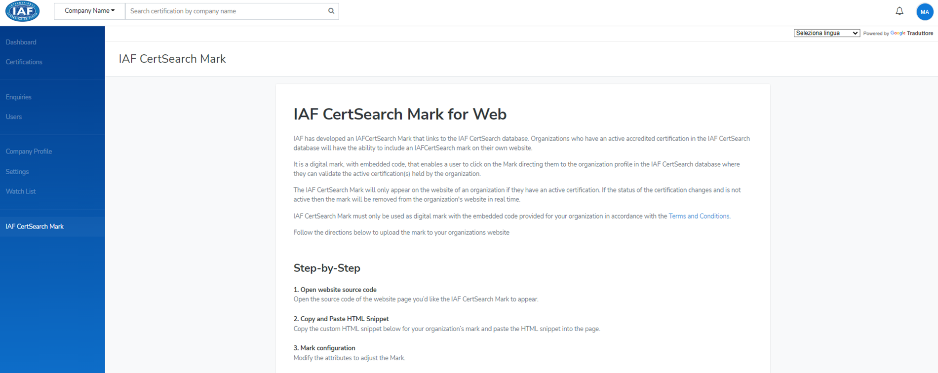 Le aziende che hanno una certificazione accreditata attiva nel database IAF CertSearch avranno la possibilità di includere il marchio IAFCertSearch sul proprio sito web.