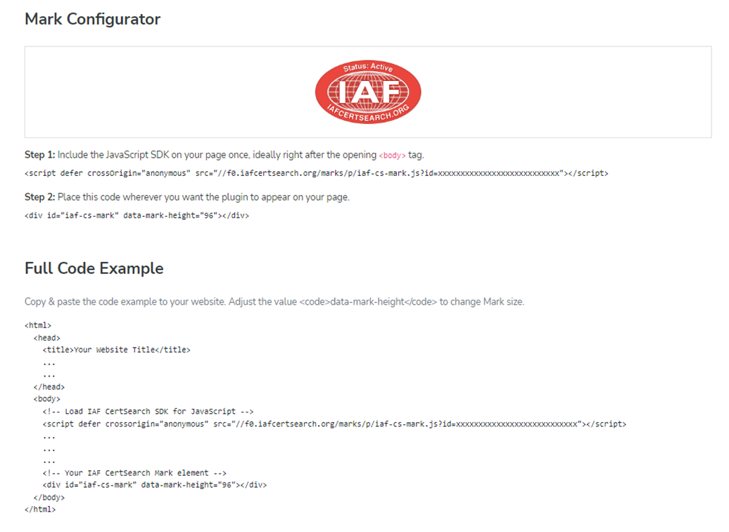 IAF ha sviluppato un marchio IAFCertSearch che si collega al database ufficiale.